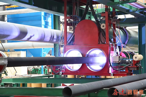 河北京东管业采用国家鼓励的“短流程”铸造工艺,即高炉铁水直接入中频炉,经升温、调质、浇注、退火、精整、试压、涂层、养生等自动化控制生产铸管。产品覆盖DN80mm--2600mm全规格,拥有自主知识产权70余项。铸管离心机采用“一键式”长拔管自动浇铸,生产效率是传统机型的两倍。球化采用最稳定的钝化镁顶吹工艺,与欧美企业技术高度一致,成份合格率达到100%。自主研发T型接口表面处理设备和吊带式水泥涂覆设备,生产效率和运转速度达到国内先进水平。