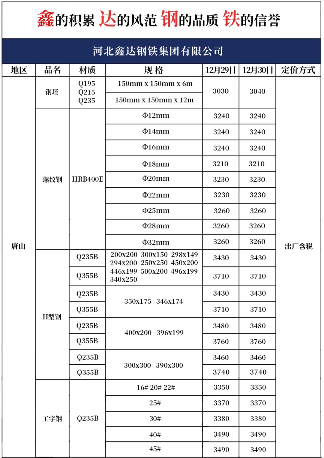 12月30日产品报价