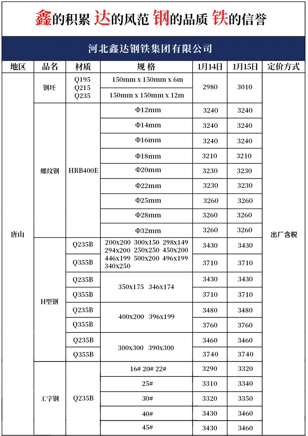 1月15日产品报价